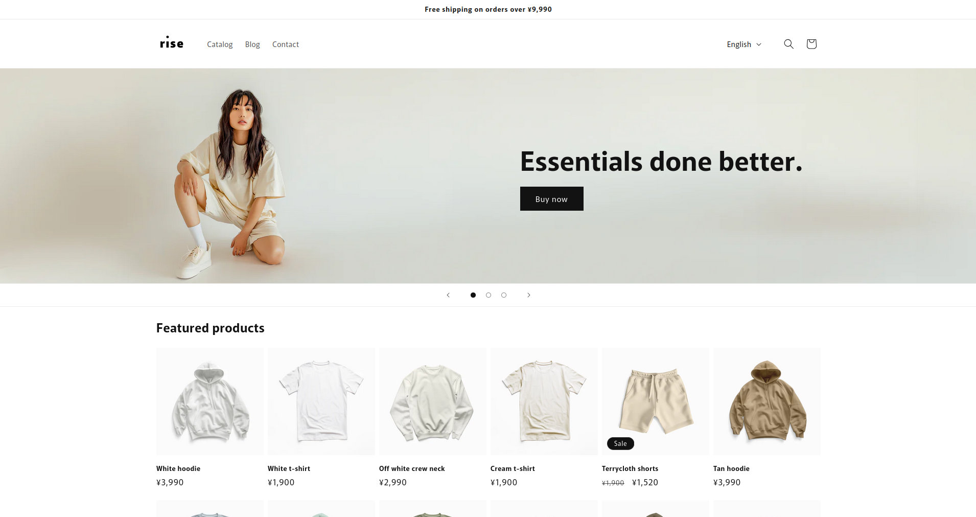 Rise is a free Shopify theme designed to support catalogs of any size with a flexible and stylish layout. Its clean, streamlined design remains effective and visually appealing whether you are selling a few specialty items or a large, varied inventory. It is built to put your products and brand story front and center.